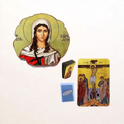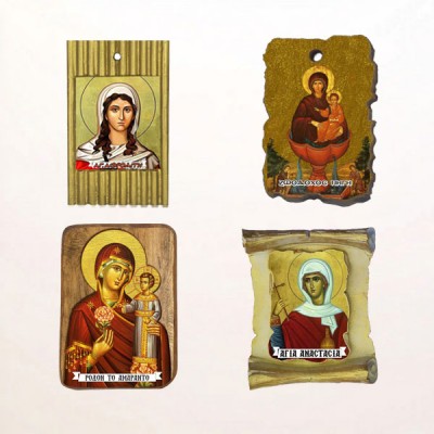 Εικόνες Αγίων σε διαφορετικά μεγέθη και υλικά, φτιαγμένες με σεβασμό και υψηλή ποιότητα.